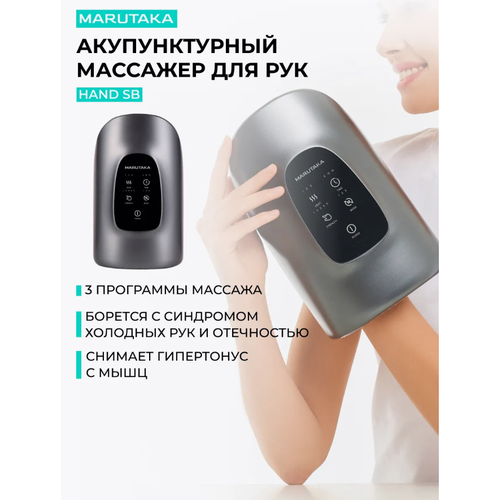 Беспроводной массажер Marutaka Hand SB базируется на воздействии на аккупунктурные точки ладони, которые оказывают положительное влияние на общее состояние организма. Благодаря интенсивному нажатию на эти точки, массажер обеспечивает точечный массаж в сочетании с интенсивной прессотерапией, положительно влияющей на обмен веществ и психологическое состояние человека.