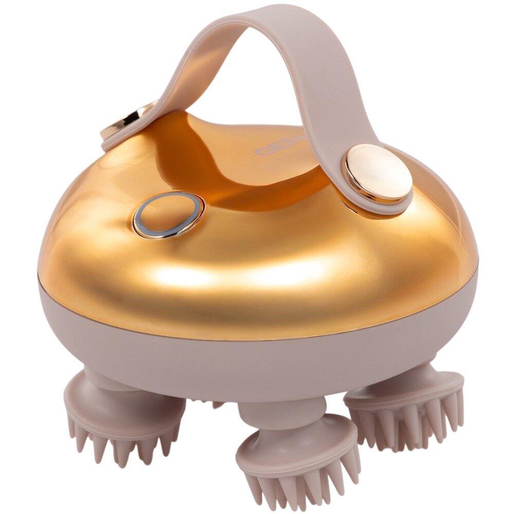 Технические характеристики Назначение: голова, шея, плечи Мощность: 5 Вт Количество массажных головок: 4 Материал массажных головок: силикон Материал корпуса: пластик, металл Цвет: золотой Управление Тип управления: электронное, кнопочное Индикация: режим работы, уровня заряда, зарядки Режимы работы Количество режимов: 3 Режимы работы: автоматический, медленный, быстрый Функция прогрева: да Длительность одного сеанса: 10 мин Автоотключение: да Особенности Подходит для сухих и влажных волос: да Степень защиты от воды: IPX7 Питание Тип питания: аккумулятор Ёмкость аккумулятора: 800 мАч Время работы: 6-8 сеансов Комплектация Кабель USB: в комплекте Инструкция: да Размеры и вес Высота: 13 см Ширина: 10 см Глубина: 10 см Вес: 0.3 кг