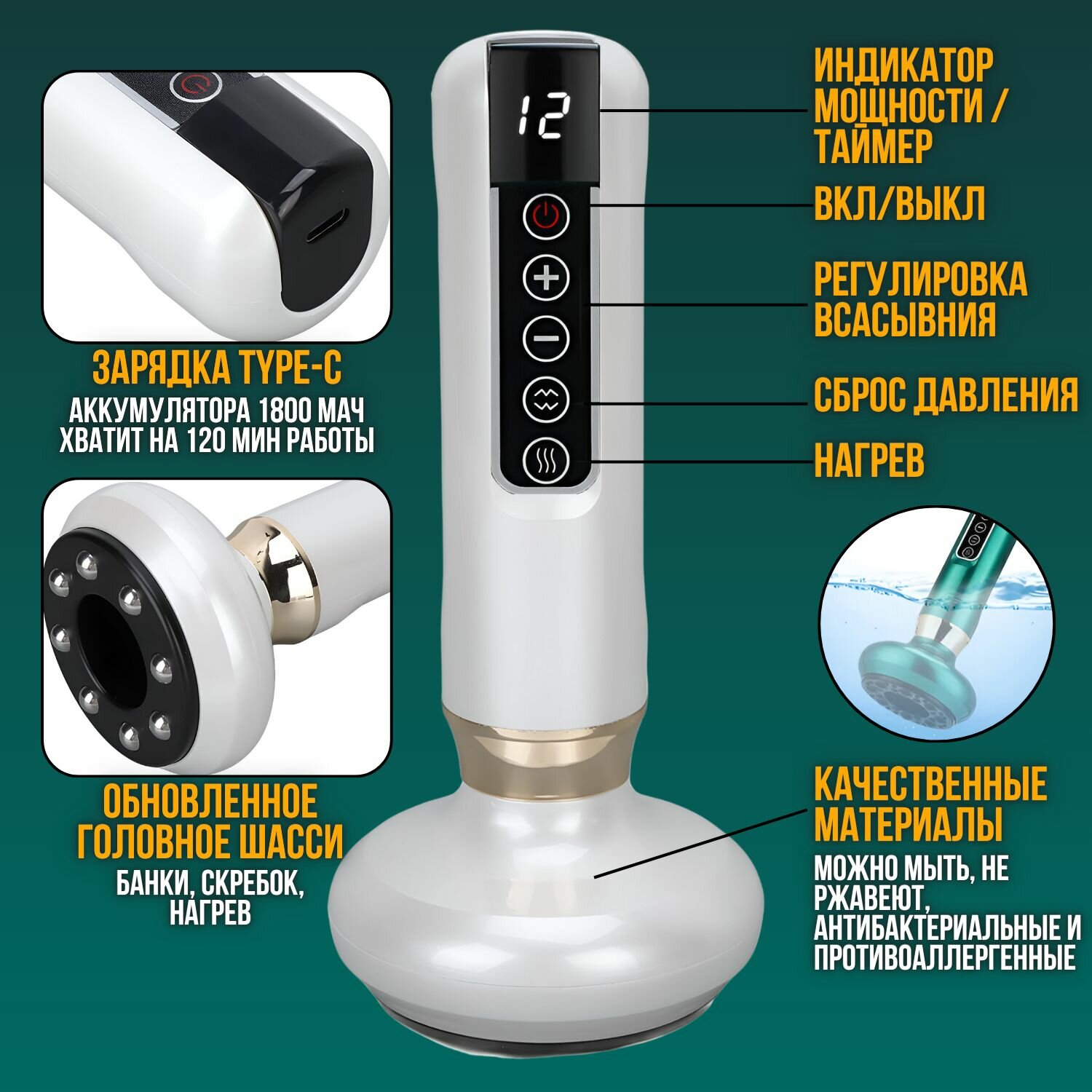 Массажер «Гуаша», 12 уровней всасывания, 3 в 1, вакуумный, инфракрасный, белый: сравнение цен, характеристики, фото, актуальное наличие и цены.