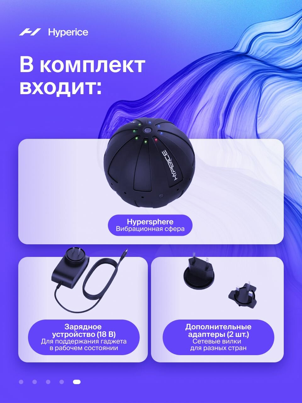 | Подробная комплектация | Вибрационная сфера Hypersphere, зарядное устройство 18V, дополнительные штекерные переходники |