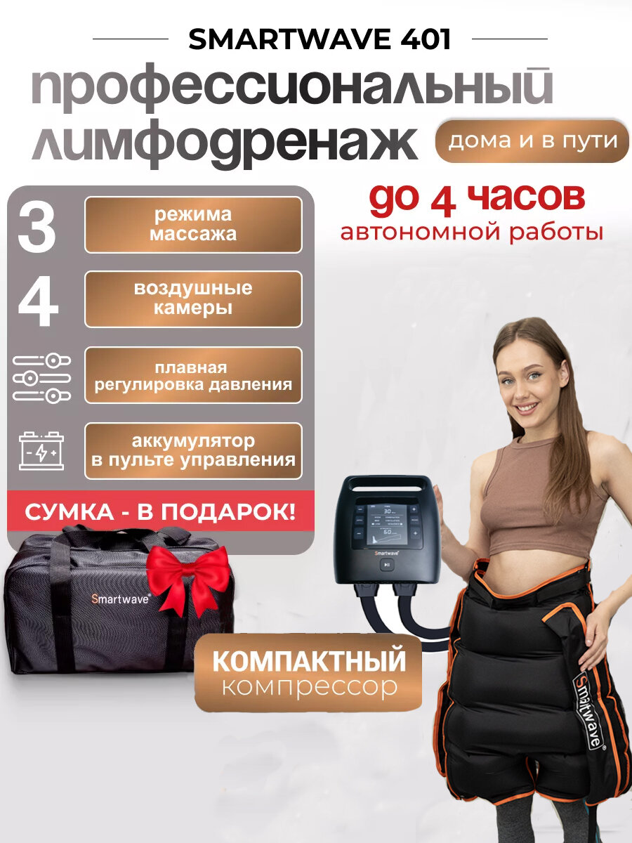 Массажер лимфодренажный для тела Smartwave 401 с манжетой-шорты, с аккумулятором, 3 режима, 4 камеры, сумка: сравнение цен, характеристики, фото, актуальное наличие и цены.
