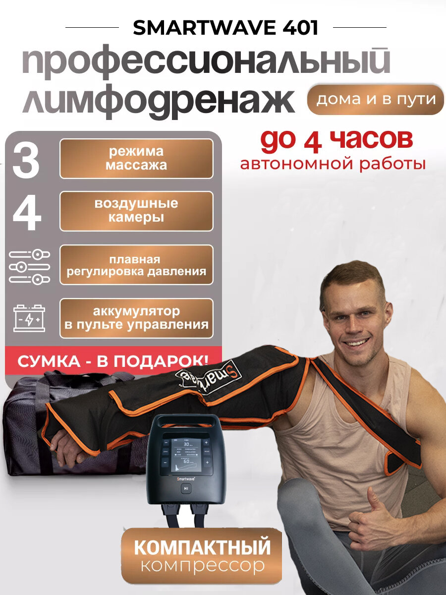 Купить Массажер лимфодренажный Smartwave 401 для руки, 4 камеры, от аккумулятора, сумка с доставкой по всей России.