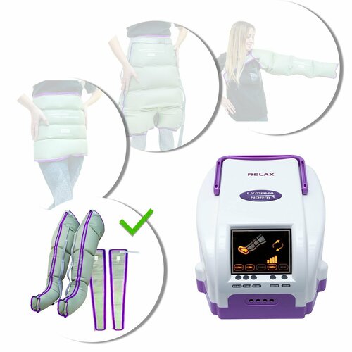 АППАРАТ ДЛЯ ПРЕССОТЕРАПИИ /ЛИМФОДРЕНАЖА LYMPHANORM (ЛИМФАНОРМ) RELAX (РАЗМЕР XL) - 4х канальный аппарат - предназначен для общего улучшения сосудистого кровотока нижних конечностей, рук и тела предотвращения явлений венозного и лимфатического застоя не только у здоровых людей, но и у пациентов с начальными проявлениями хронических заболеваний вен и лимфатических сосудов. Аппарат имеет 4 (четыре) канала для подачи сжатого воздуха в 4х камерные манжеты. ДАННЫЙ АППАРАТ ПРЕДНАЗНАЧЕН ДЛЯ ШИРОКОГО ДИАПАЗОНА ПОТРЕБИТЕЛЕЙ: Для людей, следящих за своим здоровьем и красотой, Для спортсменов, Для людей, страдающих избыточным весом, отечностью, Для женщин, в качестве реабилитации после мастэктомии. РЕЗУЛЬТАТ ПРИМЕНЕНИЯ ДАННОГО АППАРАТА: избавления от отёков, активация обменных процессов, способствующих повышению иммунитета, улучшение венозного кровообращения, Избавление от целлюлита, Снятие болевых ощущений после тренировки. Безопасный и восстановительный массаж мышц. РЕЖИМЫ РАБОТЫ: Режим «А» - Последовательный восходящий массаж. Подача/спуск сжатого воздуха снизу вверх в каждую камеру поочередно. Режим «В» - Режим лимфодренажа. Последовательный восходящий массаж, поочередное накачивание камер по одной снизу вверх, удерживая давление в каждой из камер. Скачивание всех камер одновременно. Повторение цикла. ТЕХНИЧЕСКИЕ ХАРАКТЕРИСТИКИ: · Количество каналов (камер), шт: 4 · Давление, мм. рт. ст: 50-200 · Питание: 220В / 50 Гц · Потребляемая мощность, Вт: 30 · Размеры аппарата, cм (Д x Ш x В): 24 х 12 х 19 · Вес (в упаковке), кг: 4,0 · Производитель: Maxstar Industrial (Южная Корея) · Гарантия - 12 месяцев КОМПЛЕКТАЦИЯ: · Аппарат · Манжета для ног (размер XL) – 2 шт; · Расширители - 2 шт; · Соединительные шланги; · Акупунктурные стельки – 2 шт; · Инструкция на русском языке; · Гарантийный талон ДОПОЛНИТЕЛЬНЫЕ АКСЕССУАРЫ ДЛЯ АППАРАТА (ПРИОБРЕТАЮТСЯ ДОПОЛНИТЕЛЬНО): · Манжета-шорты; · Манжета для руки; · Манжета для талии.