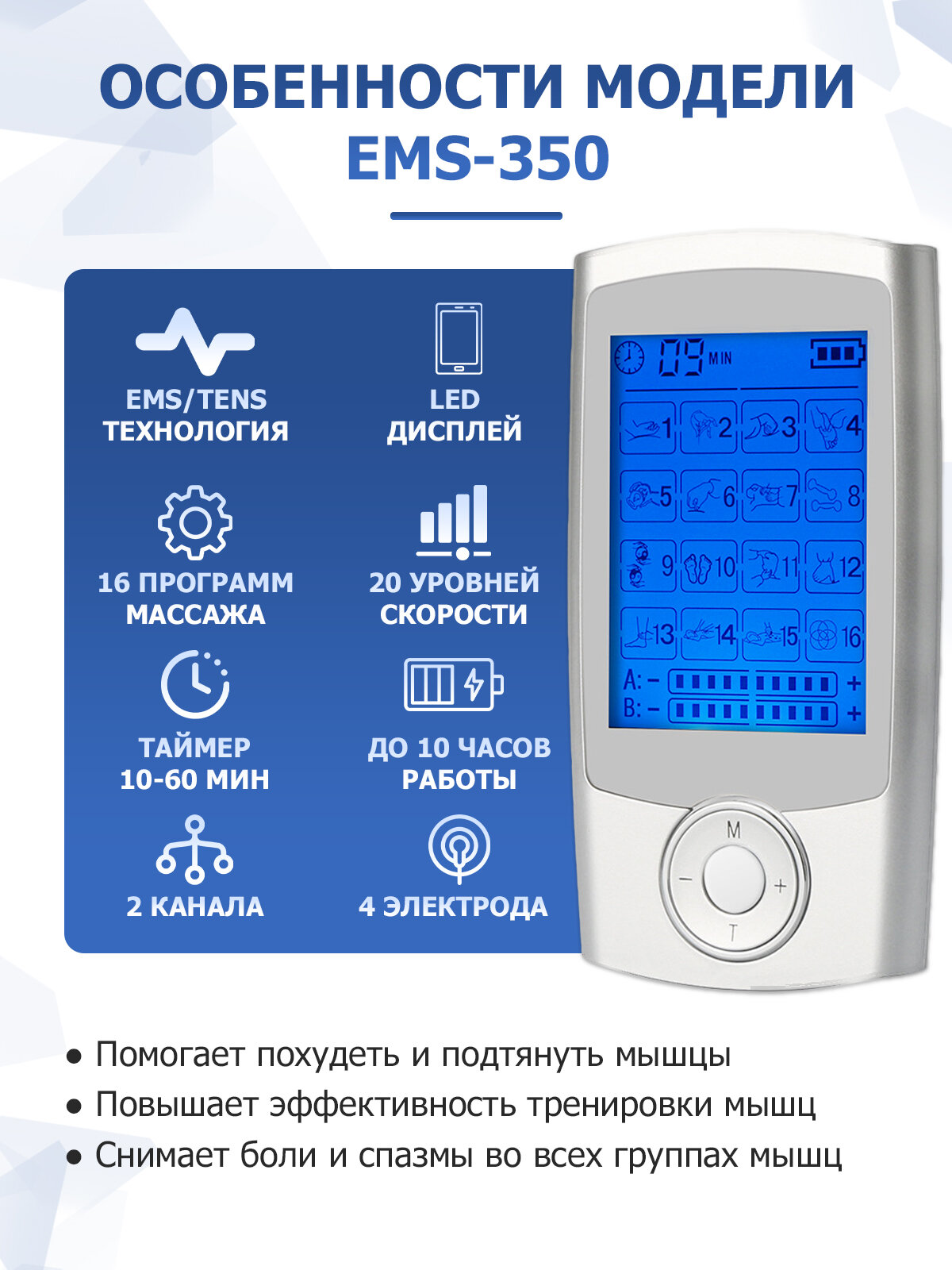 Массажер миостимулятор EMS TENS для тела EMS-350 отличается многофункциональностью и эффективностью. Особенности модели:
