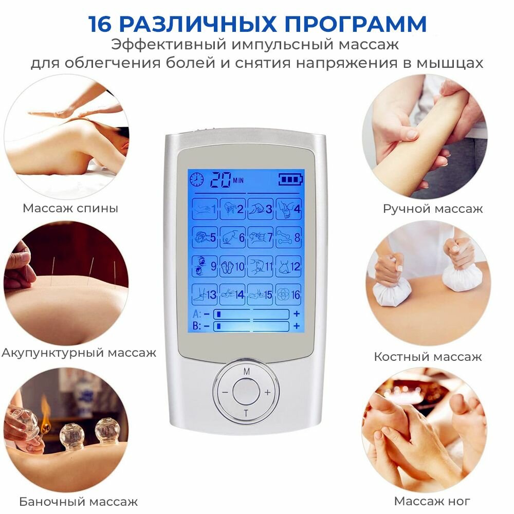 Массажер миостимулятор EMS TENS для тела EMS-350, 2 канала, 16 режимов массажа, беспроводной: сравнение цен, характеристики, фото, актуальное наличие и цены.