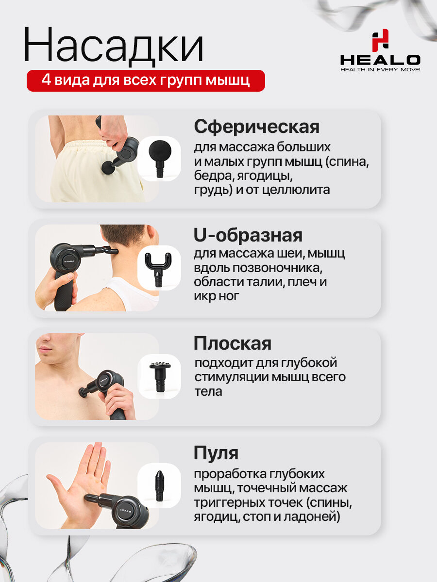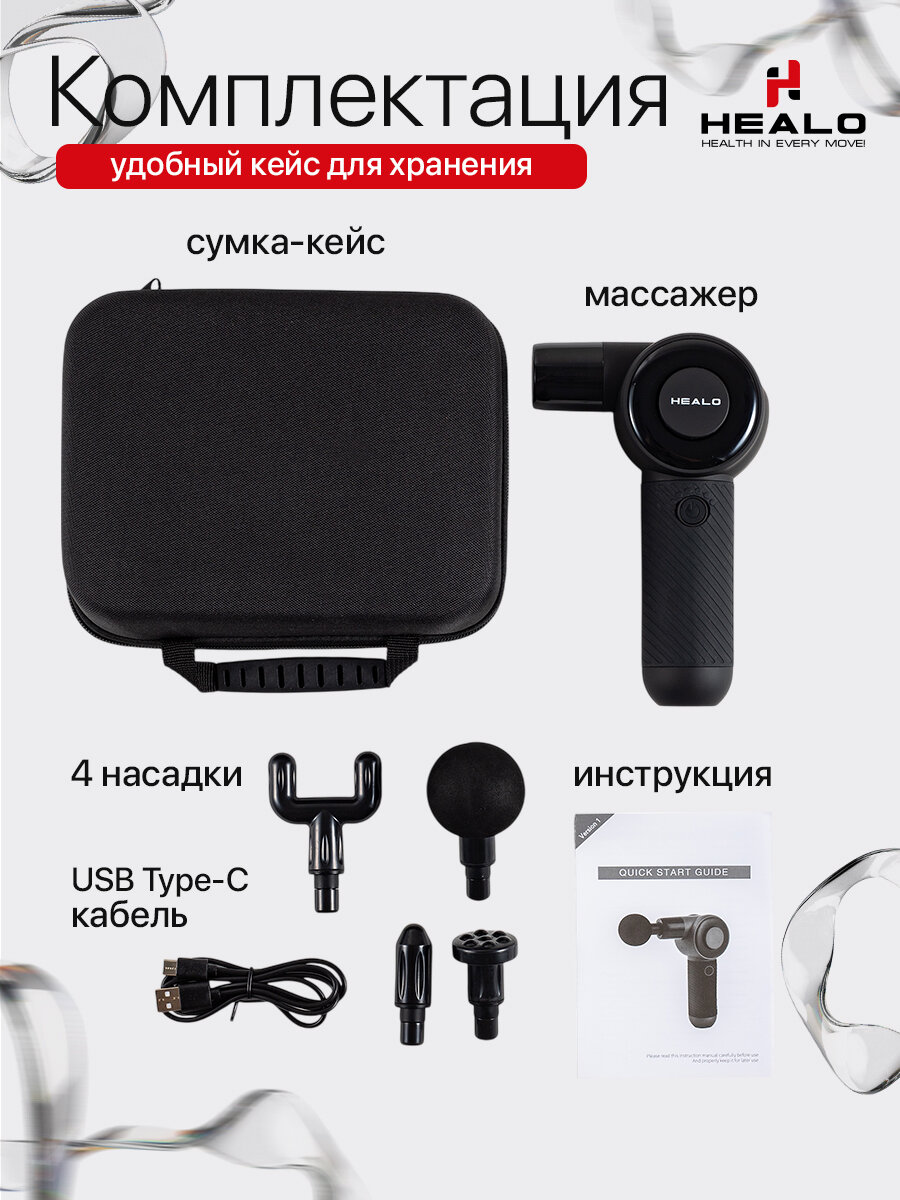 Массажер перкуссионный электрический для тела HEALO, шеи, плеч, спины, рук и ног с кейсом для хранения: сравнение цен, характеристики, фото, актуальное наличие и цены.
