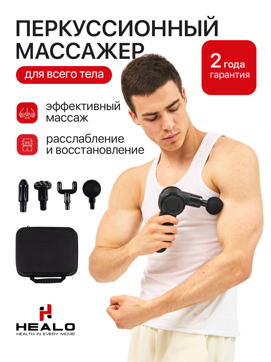 Купить Массажер перкуссионный электрический для тела HEALO, шеи, плеч, спины, рук и ног с кейсом для хранения с доставкой по всей России.