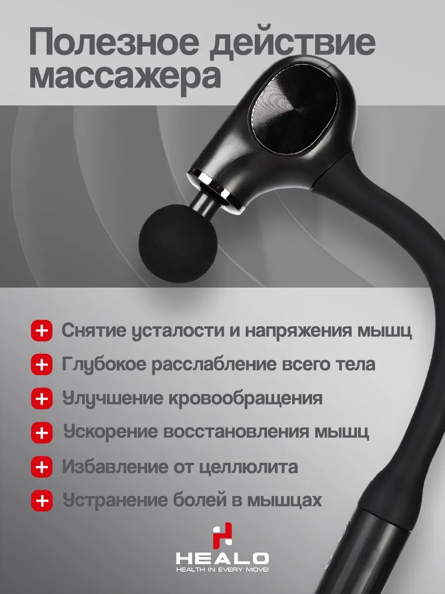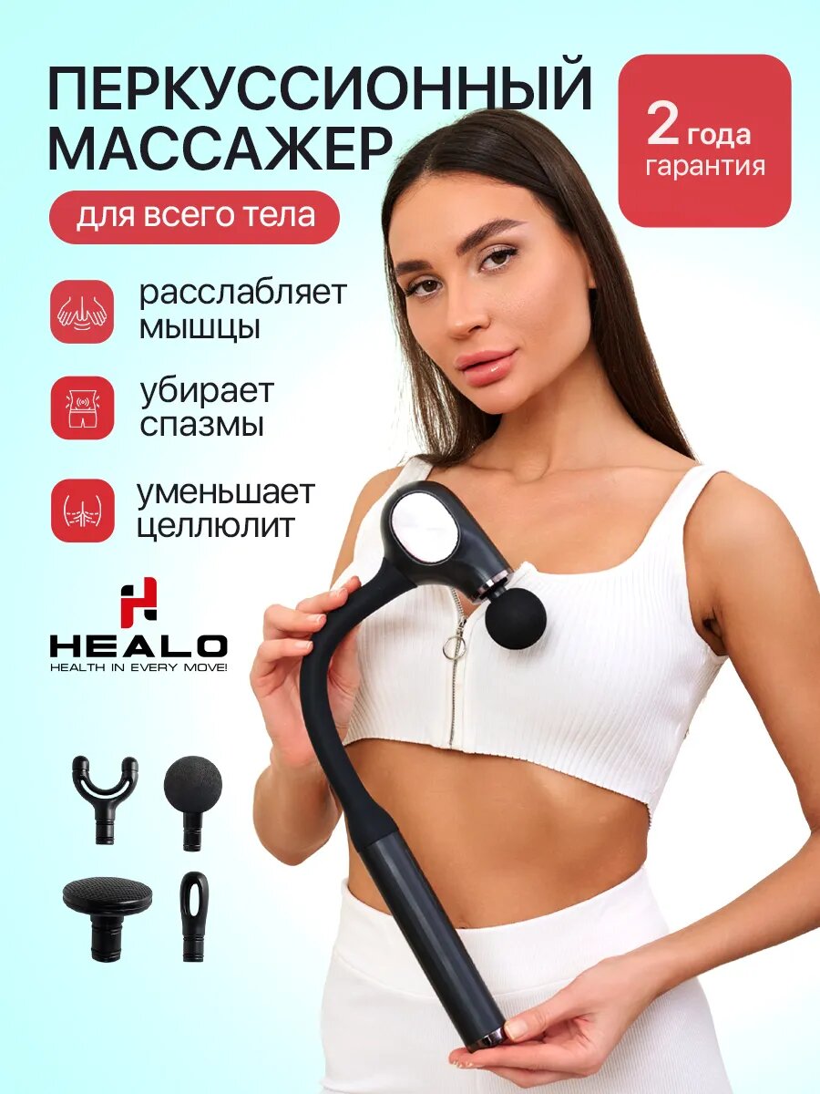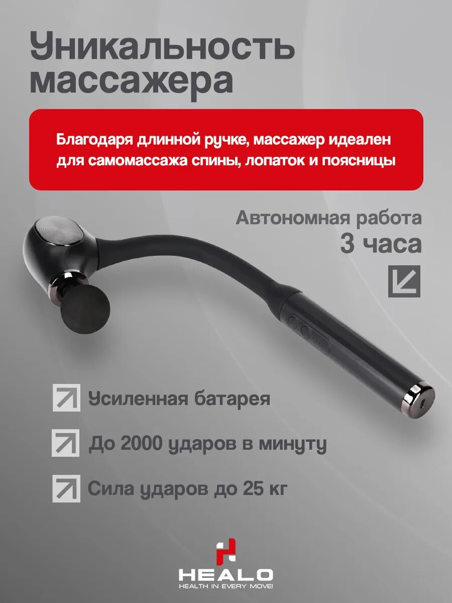 Купить Массажер перкуссионный с ручкой HEALO Hammer CM234, для спины и тела, черный с доставкой по всей России.