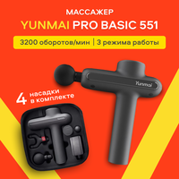 Купить Массажер Xiaomi YUNMAI Gun Pro Basic, Перкуссионный, 3 режима, 4 сменные головки, серый с доставкой по всей России.