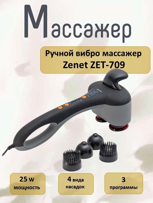 Массажер ZENET ZET-709, вибрация, тепло, 7 режимов, регулировка интенсивности, 2 насадки: сравнение цен, характеристики, фото, актуальное наличие и цены.