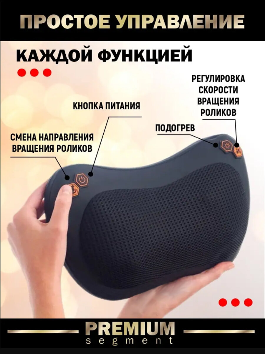 Компактный прибор можно использовать дома, в машине, на работе или отдыхе - он всегда под рукой. Нужно просто закрепить мини подушку за спинку автомобильного кресла или подголовника, сиденья или офисного стула. Управление всего одной кнопкой и ролики вращаются и увеличивая приток кислорода и расслабляют тело.