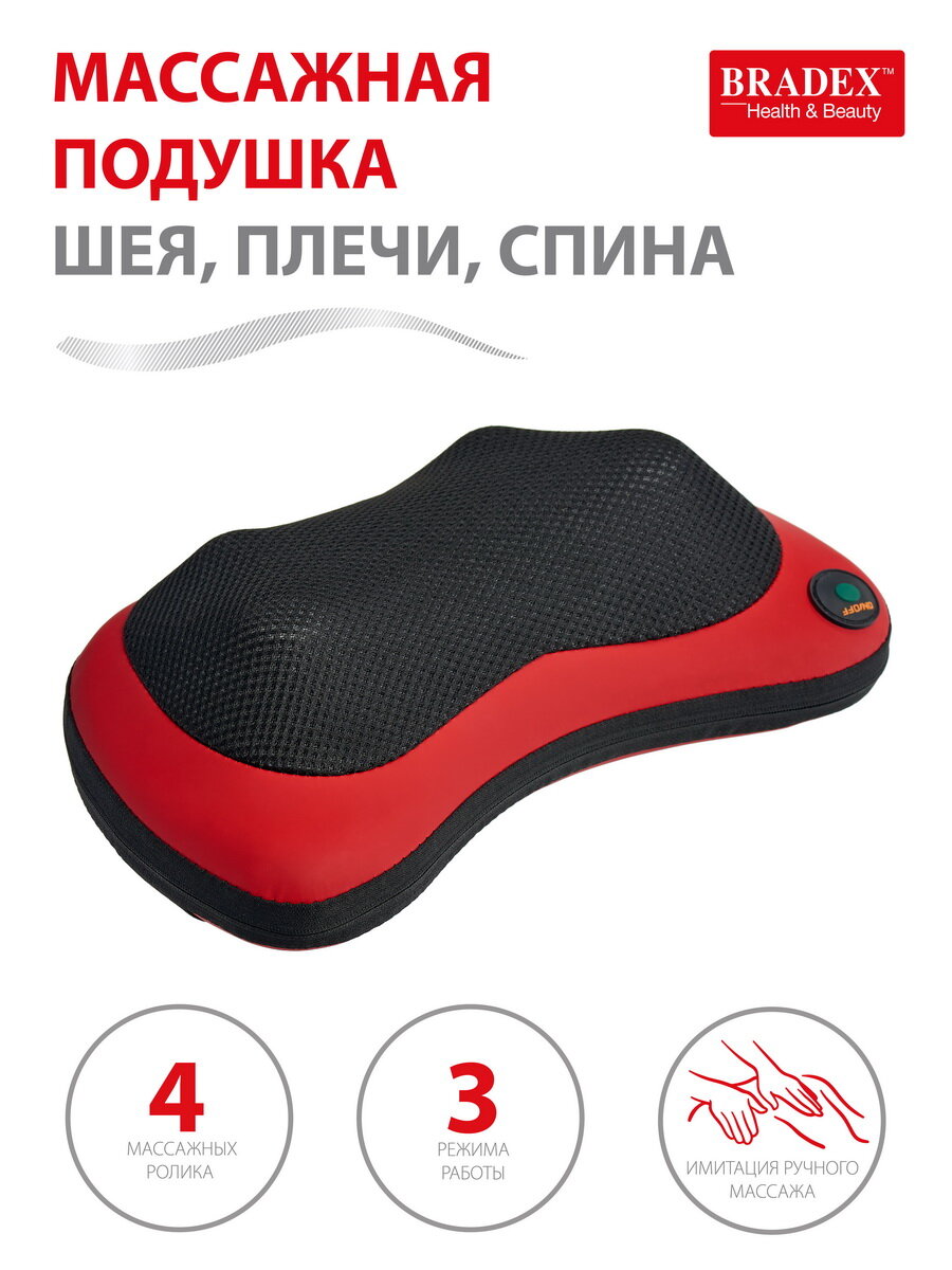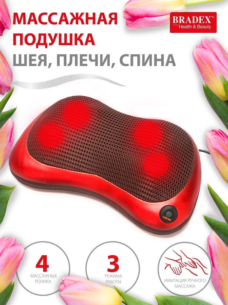 Массажная подушка шиацу BRADEX, с подогревом и роликами, массажер для шеи и плеч, красная: сравнение цен, характеристики, фото, актуальное наличие и цены.