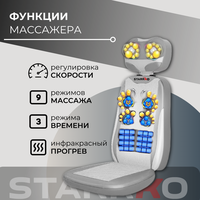 Для шеи, плеч, спины, ягодиц и бедер оснащена множеством роликовых массажеров, которые заменят Вам поход к профессиональному массажисту. Снимает отеки и спазмы, расслабит мышцы после долго рабочего дня снимет напряжение во всем теле. Вибромассажер оснащен функцией подогрева, что так же способствует более эффективному и приятному массажу.