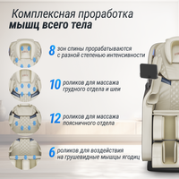 - Программы и режимы на выбор. Каждый человек уникален, и кресло это понимает! Вы можете выбрать один из нескольких автоматических режимов массажа – режим разминания, Шиацу, силовой режим, программа Расслабление мышц и режим Перед сном. Также вы можете выбрать программу автоматического аэромассажа или самостоятельно выбрать зону плеч и головы, рук или ног, а также настроить интенсивность воздействия. А функция подогрева спины подарит дополнительный комфорт во время сеанса. Теперь вы можете наслаждаться массажем, который подходит именно вам! Кресло для массажа включает в себя валики для стоп и ягодиц. Так же предусмотрены: ручной режим, режим Zero Gravity, режим запуска валика для ног или валика для ягодиц.
