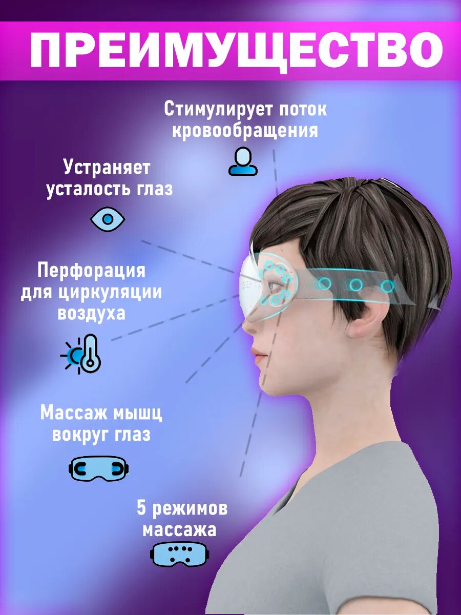 Этот электрический массажер для глаз создан, чтобы дарить вам чувство расслабления и комфорта после напряжённого рабочего дня или от общей усталости. Он не только эффективно и быстро снимает напряжение с глаз, но и помогает уменьшить отёки, мешки под глазами и мимические морщины.