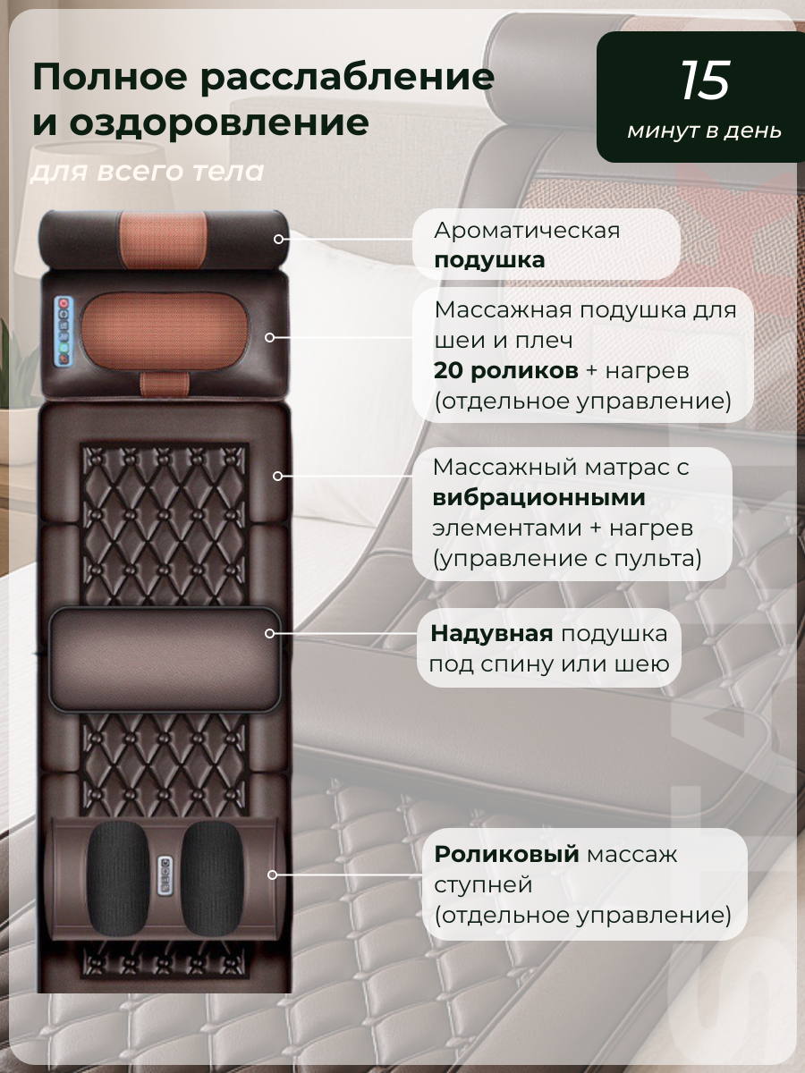 Массажный матрас 2 в 1 с подогревом и съемной массажной подушкой: сравнение цен, характеристики, фото, актуальное наличие и цены.
