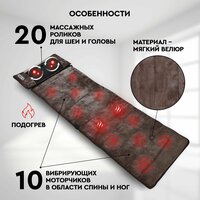 Массажный матрас с подогревом позволит Вам наслаждаться массажем в любое время и в любом месте. Массажер для тела (матрас) можно использовать на полу, на кровати, на диване, в кресле, а также на любой твердой горизонтальной поверхности. Применяя виброматрас совместно с массажной подушкой – Вы обеспечите себе массаж всего тела сразу. Его регулярное применение позволит снять напряжение в мышцах, повысить жизненный тонус, улучшить обменные процессы в организме. Подогрев эффективно стимулирует кровообращение. Данный электромассажер эффективен в борьбе с целлюлитом и лишним весом, т. к. может обеспечить антицеллюлитный массаж и лимфодренажный массаж. А съемная массажная подушка – это роликовый массаж и массаж Шиацу.