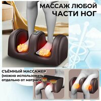 Для тех, кто хочет сосредоточится на конкретных проблемных зонах, наш матрас имеет массажер для НОГ, который также включается отдельно. Коврик массажный и надувная подушка для поясницы помогут улучшить кровообращение и освободиться от боли и напряжения. Каждая часть матраса может отсоединяться и существовать как отдельный массажер. Подушка валик набита целебными ароматическими травами, и служит как средство для ароматерапии. Массажер для ШЕИ имеет собственные регулировки, которые помогут вам снять напряжение и улучшить качество сна.