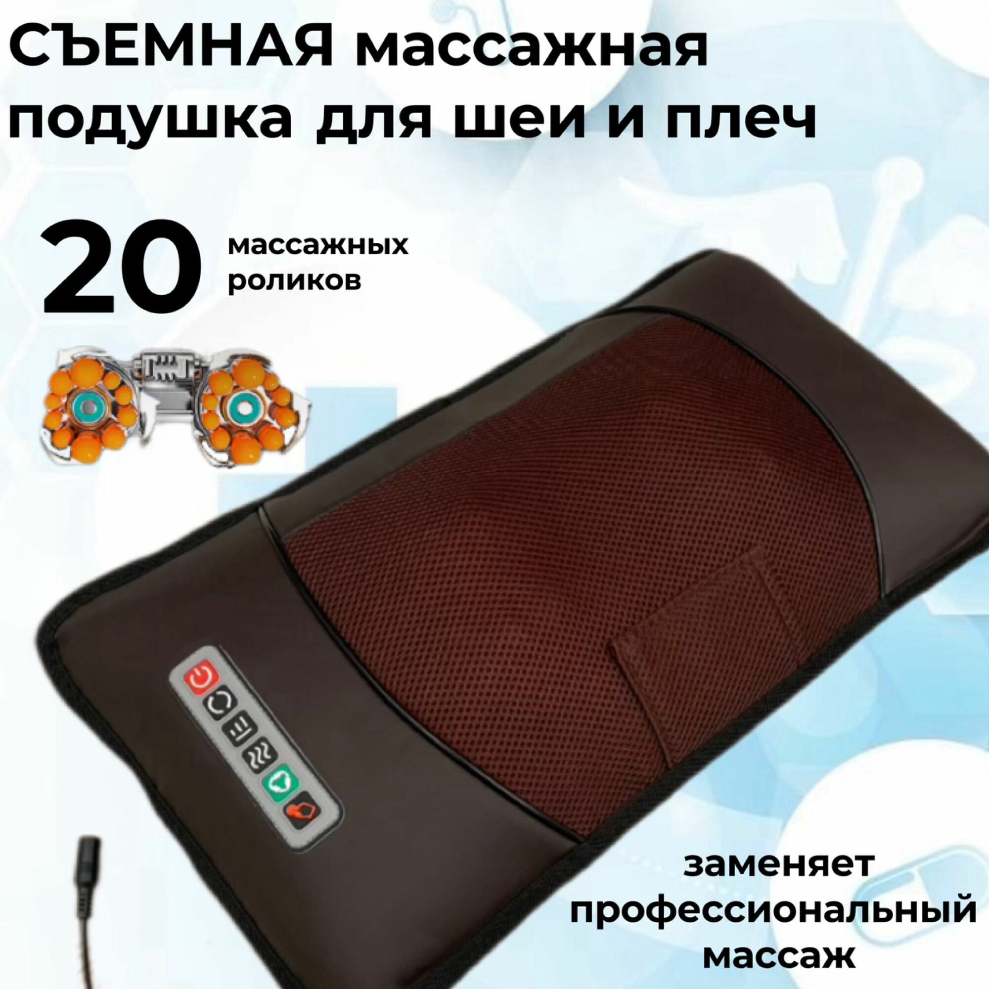 Ароматическая подушка валик; массажная подушка для шеи и плеч; массажный матрас с роликами; массажер для ног; пульт управления; инструкция на русском языке