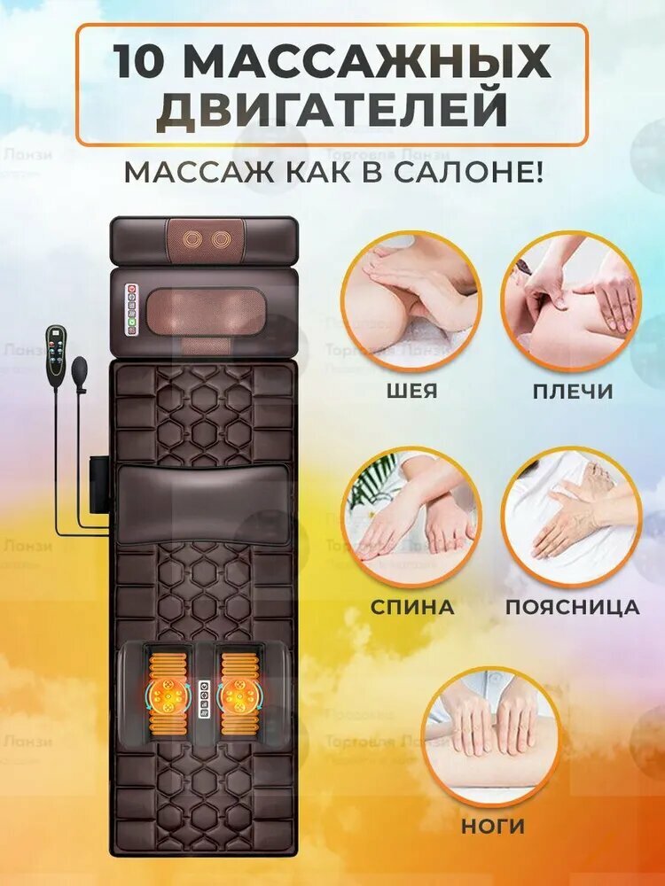 Массажный матрас, шея, спина, ноги, многофункция, 5 областей, 9 мод, темно-коричневый: сравнение цен, характеристики, фото, актуальное наличие и цены.