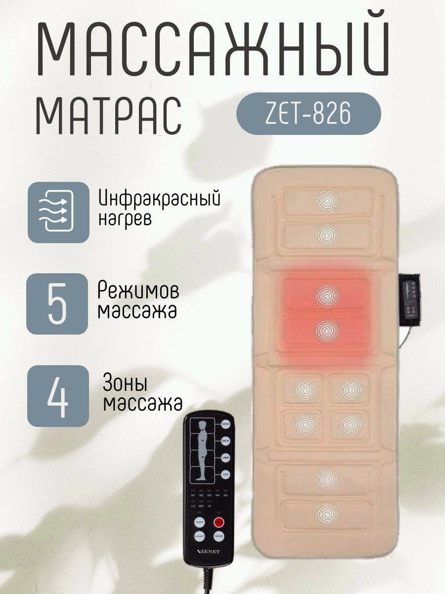 Массажный матрас ZENET ZET-826, вибрационный, с подогревом, 5 режимов работы, 12Вт: сравнение цен, характеристики, фото, актуальное наличие и цены.