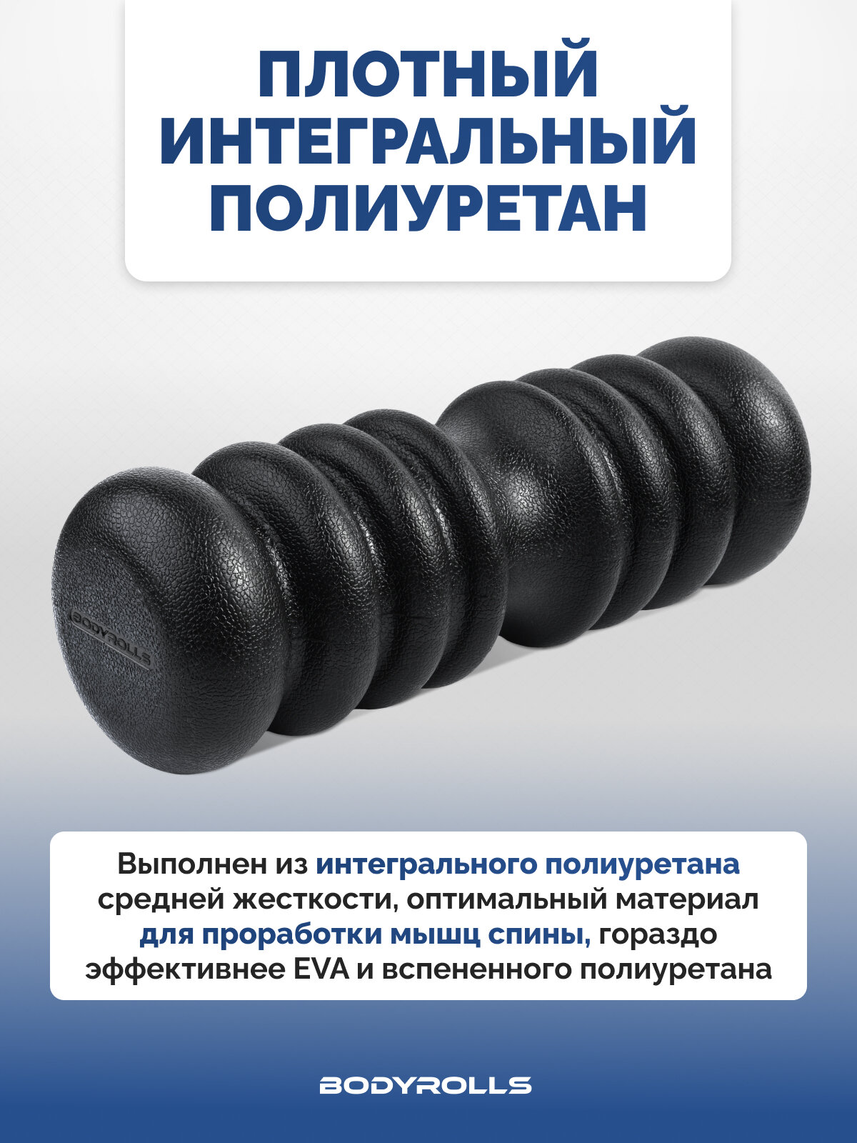 Запатентованный массажный ролик BODYROLLS воздействует на мышцы и фасции, оказывая миофасциальный релиз (МФР). Валик для массажа спины позволяет полностью проработать все мышцы спины, снять напряжение, улучшить мышечную активность и создать мышечный корсет, так необходимый в условиях малоподвижного образа жизни. Также тренажер для поясницы корректирует осанку (детскую и взрослую), воздействуя на все отделы позвоночника, ребра и таз за счет веса тела пользователя.