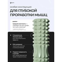 Массажный ролик оснащен специальными пенными шипами, которые обеспечивают максимальный эффект и комфорт во время использования. Гладкая поверхность посередине ролика предотвращает возможные травмы при тренировке.