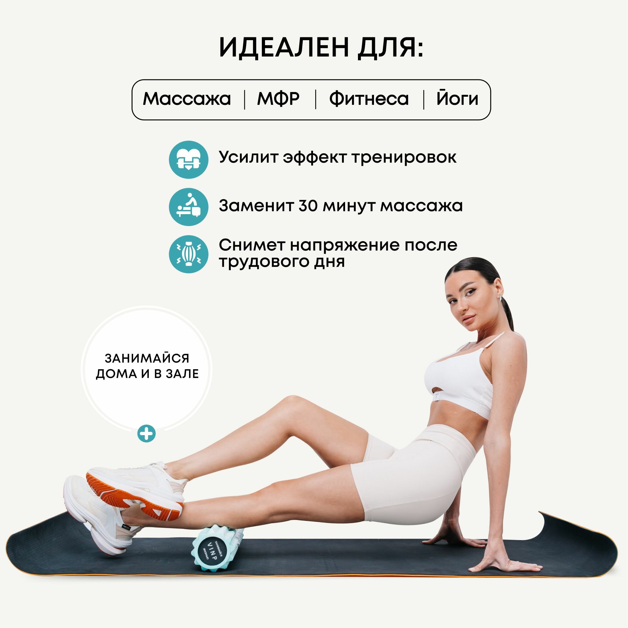Массажный ролик VINP 45х13 см подходит для йоги, пилатеса, гимнастики, ЛФК и других видов тренировок. Он поможет улучшить вашу гибкость, снять напряжение в мышцах и повысить эффективность от занятий спортом.