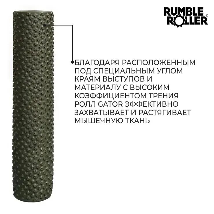 Ролик массажный для МФР RumbleRoller Gator 56х11,5 см, средняя жёсткость, цвет хаки: сравнение цен, характеристики, фото, актуальное наличие и цены.