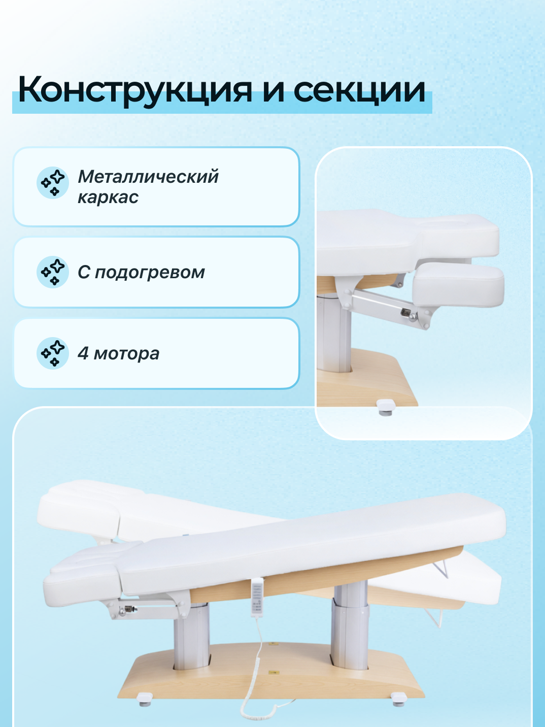 Стационарный стол Mizomed MZ 2259Н - это надежное и удобное оборудование, идеально подходящее для массажистов и косметологов. Он обладает рядом превосходных характеристик, которые обеспечат комфорт и эффективность во время процедур. ✨ Характеристики стола: - Подогрев ложемента. - Нагрузка до 200кг на подъем. - Премиум материалы: стол выполнен только из высококачественных материалов. - Регулировка высота, ног и спины: возможность настройки стола, чтобы соответствовать индивидуальным предпочтениям, потребностям специалиста и клиента. - Удобное покрытие: будучи мягким и комфортным, оно обеспечивает оптимальную поддержку и расслабление для клиента. - Широкая рабочая поверхность: достаточно места для проведения процедур различной сложности. - Простота в использовании: легкость в настройке и управлении, позволяющая сосредоточиться на работе с клиентом. - Подсветка создаст приятную рабочую атмосферу. Стационарный стол Mizomed MZ 2259Н поможет вам создать комфортную и профессиональную обстановку для ваших процедур. Будь то массаж, косметические процедуры или физиотерапия, этот стол обеспечит оптимальные условия для работы и отдыха клиентов. Обновите свой кабинет и обеспечьте клиентам высокий уровень комфорта с помощью Стационарного стола Mizomed MZ 2259Н от Mizomed!