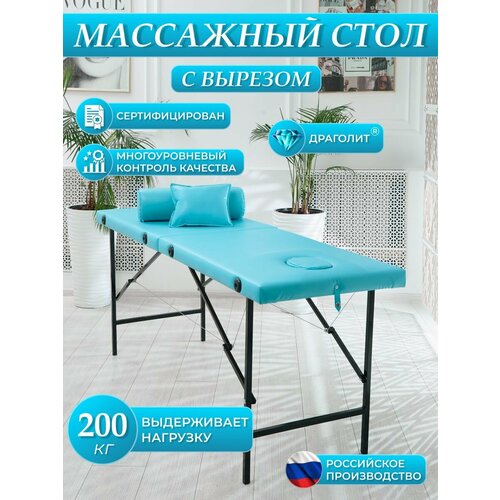 Массажный стол с вырезом для лица предназначен для всех видов массажа и других процедур. Параметры кушетки в разложенном виде: высота 70 см, ширина 60 см, длина 180 см. Нагрузка до 200 кг. В подарок вы получаете удобную заглушку для выреза. Параметры кушетки в сложенном виде: высота 60 см, длина 90 см, ширина 13 см. Вес изделия всего 11 кг. Ножки выполнены из стального профиля с заглушками для защиты покрытия, на котором устанавливается кушетка. Массажный стол сделан из искусственной кожи российских производителей, что позволит ей увеличить срок службы в отличие от аналогичных предложений. Кожа легко обрабатывается спецсредствами и имеет высокую плотность. Для наполнения используется листовой поролон средней жесткости, что позволяет сохранять ему форму. Кушетка легко складывается в переносной чемодан. Оснащен ножками, ручкой для переноски и заглушкой в комплекте. Для закрытия чемодана используется мягкий замок, который не цепляется за одежду. Массажные столы сертифицированы и соответствуют описанию в карточках товара. На производстве проходит многоуровневый контроль качества и используются только высококачественные материалы и фурнитура. Обивка и натяжка кушеток отличается высоким качеством и уникальной бесшовной технологией, которая защищает углы и дает более долгий срок службы изделия.