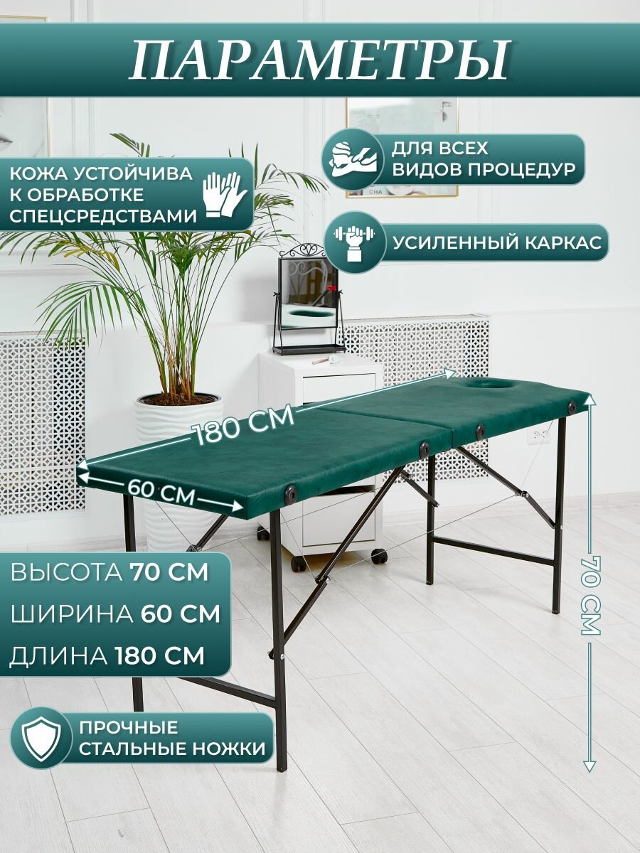 Массажный стол с вырезом для лица предназначен для всех видов массажа и других процедур6 для шугаринга, для перманентного макияжа, для наращивания ресниц, для массажа и др. Параметры массажного стола в разложенном виде: высота 70 см, ширина 60 см, длина 180 см. Нагрузка до 200 кг. В подарок вы получаете удобную заглушку для выреза. Параметры массажного стола в сложенном виде: высота 60 см, длина 90 см, ширина 13 см. Вес изделия всего 11 кг. Ножки выполнены из стального профиля с заглушками для защиты покрытия, на котором устанавливается кушетка. Массажный стол сделан из искусственной кожи российских производителей, что позволит ей увеличить срок службы в отличие от аналогичных предложений. Кожа легко обрабатывается спецсредствами и имеет высокую плотность. Для наполнения используется листовой поролон средней жесткости, что позволяет сохранять ему форму. Кушетка легко складывается в переносной чемодан. Оснащен ножками, ручкой для переноски и заглушкой в комплекте. Для закрытия чемодана используется мягкий замок, который не цепляется за одежду. Массажные столы сертифицированы и соответствуют описанию в карточках товара. На производстве проходит многоуровневый контроль качества и используются только высококачественные материалы и фурнитура. Обивка и натяжка кушеток отличается высоким качеством и уникальной бесшовной технологией, которая защищает углы и дает более долгий срок службы изделия. Стол массажный, кушетка производятся компанией драголит на собственной фабрике под собственным брендом. На каждое изделие есть гарантия 6 месяцев, что позволит вам в течение этого срока убедиться в качестве товара. Если у вас возникнут проблемы с товаром, просим связаться с производителем по почте в гарантийном талоне и мы решим в короткие сроки ваши проблемы. В каждой серии массажных столов и кушеток представлены дополнительные аксессуары, которые можно приобрести в магазине для выбранного товара. Это валики под ноги, подушки под голову, стульчик для косметолога и многое другое. Все дополнительные аксессуары сделаны в тех же цветах и фактурах для комплектации массажного стола и кушетки.