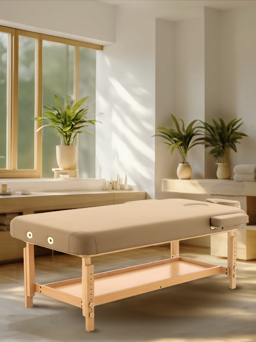 Конструкция стационарного массажного стола деревянного FIX-MT2 учитывает все те требования, которые выдвигаются к оборудованию данного типа. Стол обеспечивает клиенту комфортное нахождение в течение всей процедуры. Также он создает оптимальные условия и для работы мастера. Данная модель подойдет не только для проведения массажа, но и для других процедур из области медицины и косметологии. Рама стола выполнена из натурального дерева. Прочная конструкция выдерживает нагрузку до 300 килограмм, что позволит работать с клиентами различной комплекции. Также рама не портится от влияния влаги, воздействия моющих и чистящих средств. Вы можете ее дезинфицировать по мере необходимости. Наполнителем для мягкой части стола служит специальный гипоаллергенный поролон. Он хорошо держит свою форму, не проминается, не теряет своих изначальных свойств. В качестве обивки используется винил-люкс. Этот материал также отличается гипоаллергенностью, выдерживает интенсивные механические нагрузки, не портится от влаги и частой эксплуатации. Данная модель массажного стола имеет специальный вырез для лица, что позволит клиенту максимально комфортно расположиться для проведения массажа.
