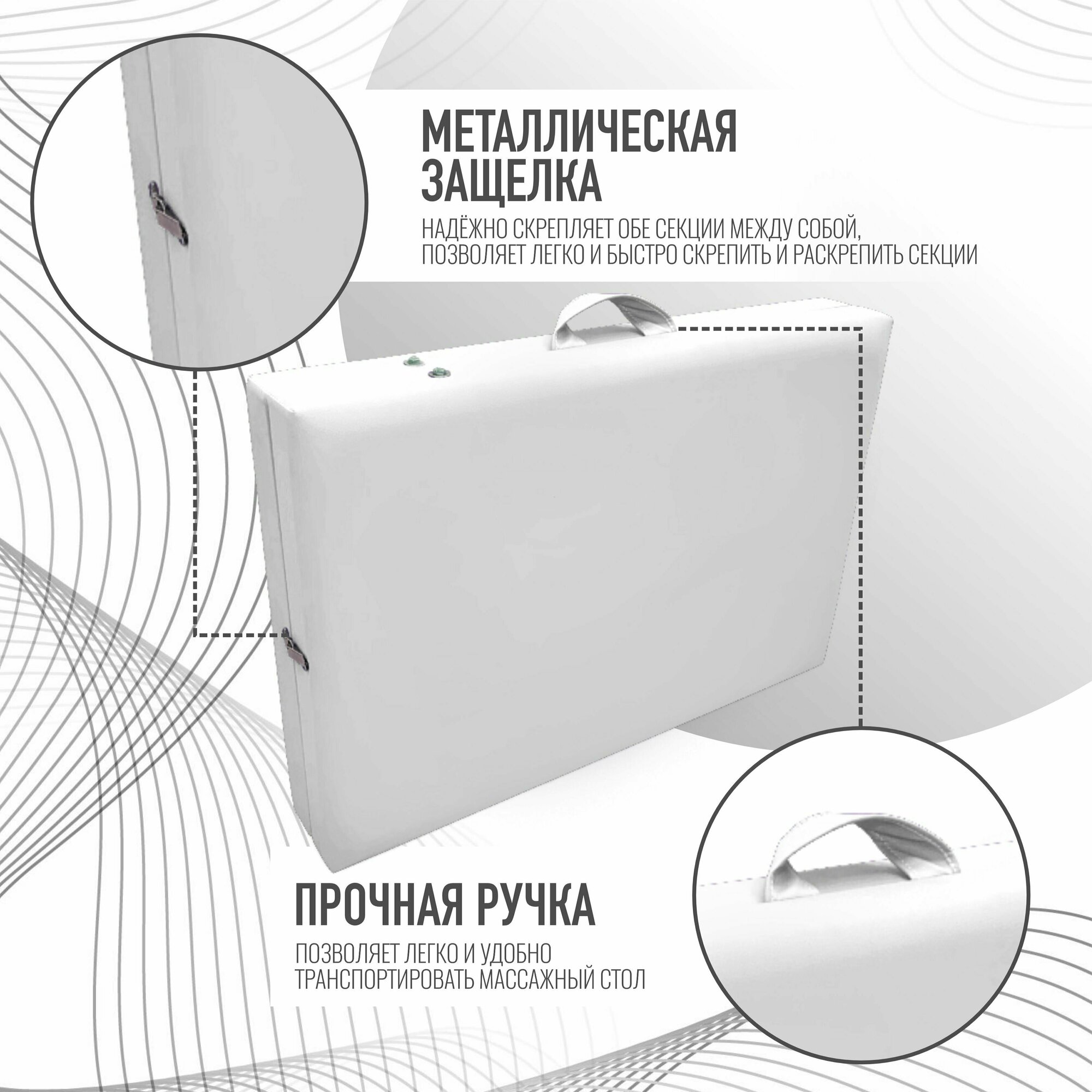 Классическая модель складного массажного стола. От компании BeautyMedCompany. Подойдет как для профессионального использования, так и для домашнего использования. В собранном состоянии удобно переносится благодаря вшитой ручке для переноса. Основание берёзовая фанера толщиной - 6 мм и борт из фанеры 15мм по всему корпусу, наполнитель мебельный пенополиуретан 3см повышенной плотности, экокожа мягкая матовая российского производства, выдерживает разные средства обработки и долго сохраняет презентабельный внешний вид , не растягивается, класса люкс . Ножки стальные цельносварные, выдерживают вес до 300 кг, с полимерным окрашиванием, а это значит, что они не будут ржаветь и устойчивы к царапинам и ударам. Гарантия 12 месяцев.