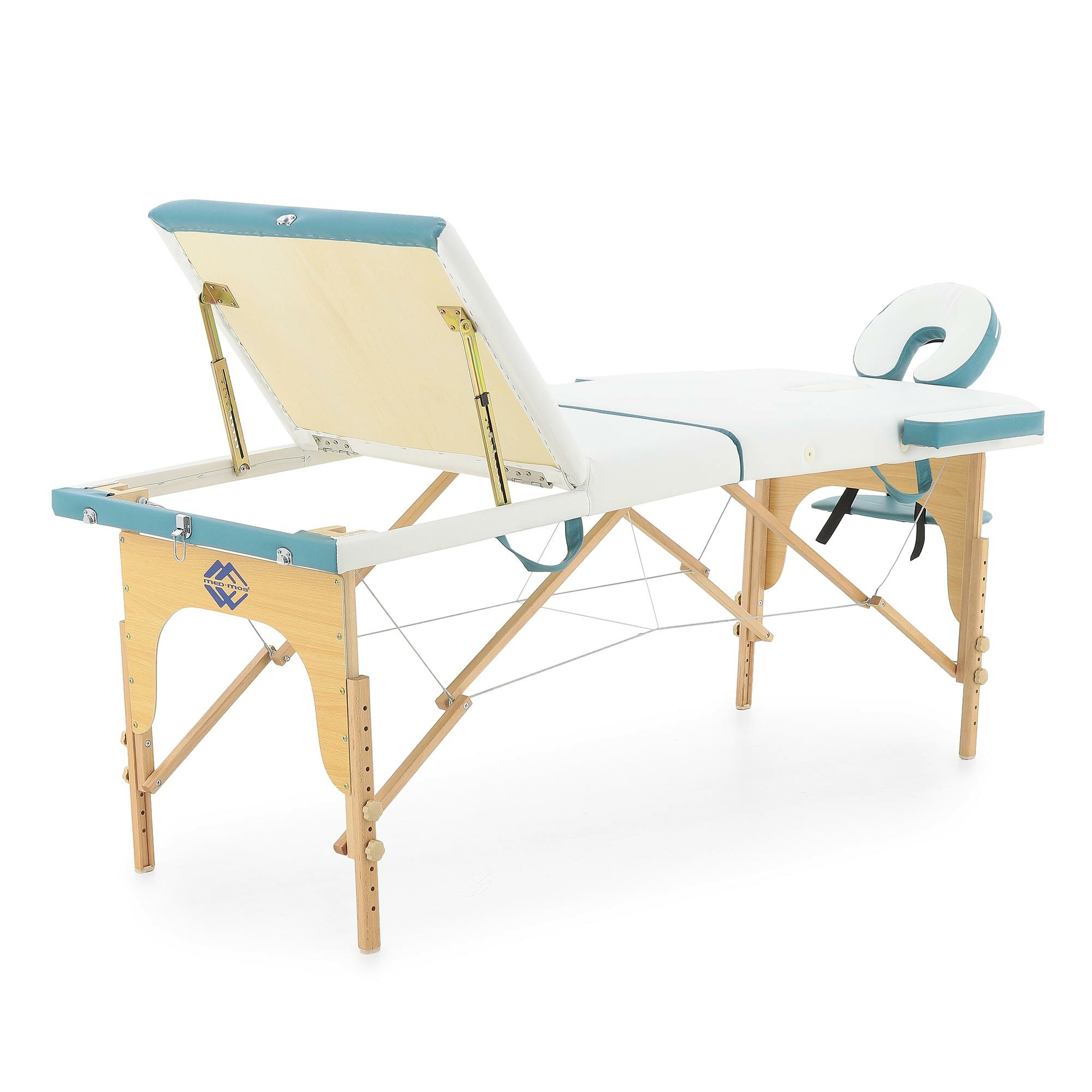 Он состоит из трех регулируемых секций, каждая из которых может настраиваться по углу наклона и положению. Комплектуется вырезом для лица и подголовником, благодаря которым обеспечивается высокий уровень комфорта для клиента во время проведения массажа.