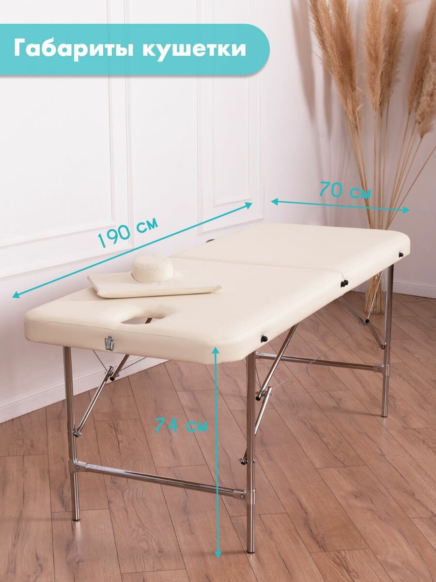 Складной массажный стол с вырезом для лица Мастер 190В75 размерами 190х70 бренда Cosmotec Увеличенная модель стола обеспечивает клиентам дополнительный комфорт, а мастеру удобство во время процедуры. Уникальный дизайн с закругленными углами; Увеличенный размер (190х70); В основе каркаса лежит прочная многослойная фанера толщиной - 6 мм; Добавлен третий слой поролона для большего комфорта; Материал обивки экокожа; Ножки изготовлены из прочного и лёгкого хрома; Максимальная нагрузка до 250 кг; Кушетка складывается в удобный чемоданчик и имеет размеры в сложенном виде: 95х70х18 весом 13кг. Благодаря удобной пластиковой ручке и небольшому весу, кушетку удобно носить с собой. Параметры данной модели: прямые углы, двойной слой поролона. Размеры в разложенном виде 190х70х74см (Длина х Ширина х Высота). В подарок к данному массажному столы прилагается заглушка для отверстия выполненная в форме мягкой подушки, благодаря чему массажный стол может быть использован как косметологическая кушетка для процедур по: наращиванию ресниц, перманентному макияжу, татуажу, шугарингу, обёртыванию, микроблейдингу, спа процедур, хиджаме и многого другого.