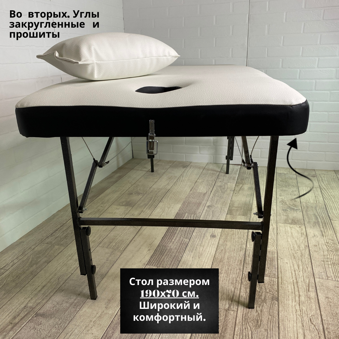 Купить Массажный стол складной 190х70 см и Регулировкой высоты 65-85 Бело-Черный. Двойной поролон, нагрузка до 300 кг Fabric-stol с доставкой по всей России.