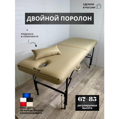 Купить Массажный стол складной 190х70 см и Регулировкой высоты 65-85 Бежевый. Двойной поролон, нагрузка до 300 кг Fabric-stol с доставкой по всей России.