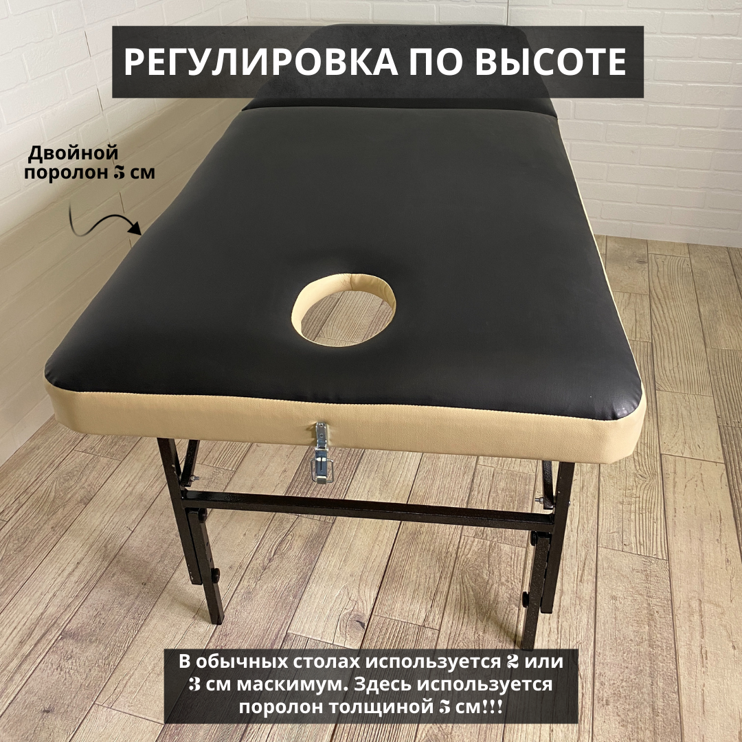 Купить Массажный стол складной 190х70 см и Регулировкой высоты 65-85 Черно-бежевый. Двойной поролон, Двойной цвет Fabric-stol с доставкой по всей России.