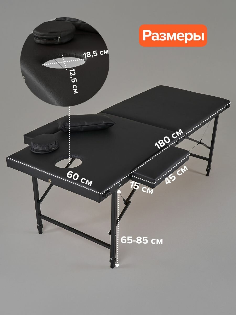 Обивка массажного стола из премиум экокожи легко чистится и сохраняет отличное состояние длительное время, что упрощает уход за ним. Не упустите возможность повысить уровень обслуживания своих клиентов с помощью массажного стола от La Belo. Массажный стол с регулировкой складной с вырезом имеет следующие размеры: массажный стол 190х70, массажный стол 180х60