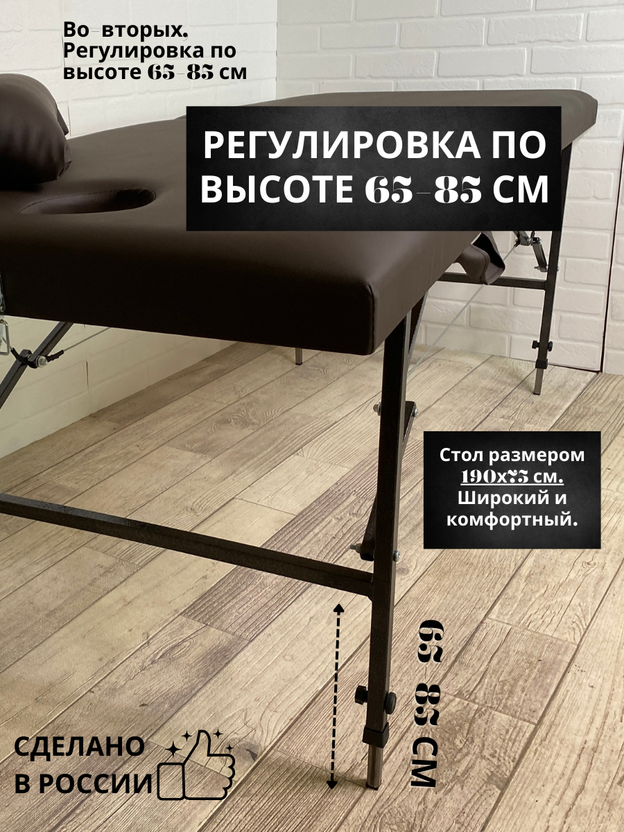 Купить Массажный стол складной кушетка массажная 190х75 см и Регулировкой высоты Шоколадный Fabric-stol с доставкой по всей России.