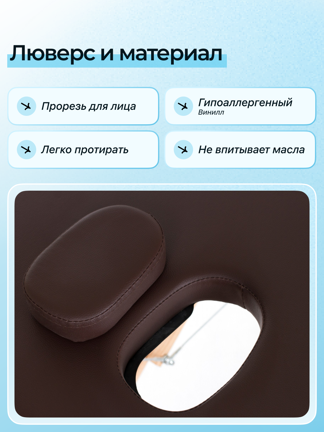 - Вырез для лица: В подголовнике + лицевой люверс в панели