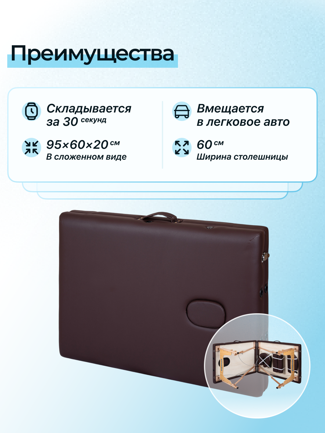 Отличный выбор для специалистов, которым нужен легкий, надежный и функциональный массажный стол с удобной системой регулировки и комфортной поверхностью для клиентов.