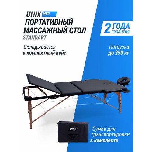 Купить Массажный стол UNIX Standard 3 Section Black 3 секции, деревянный с регулировкой высоты и вырезом для лица, 182х69 см с доставкой по всей России.