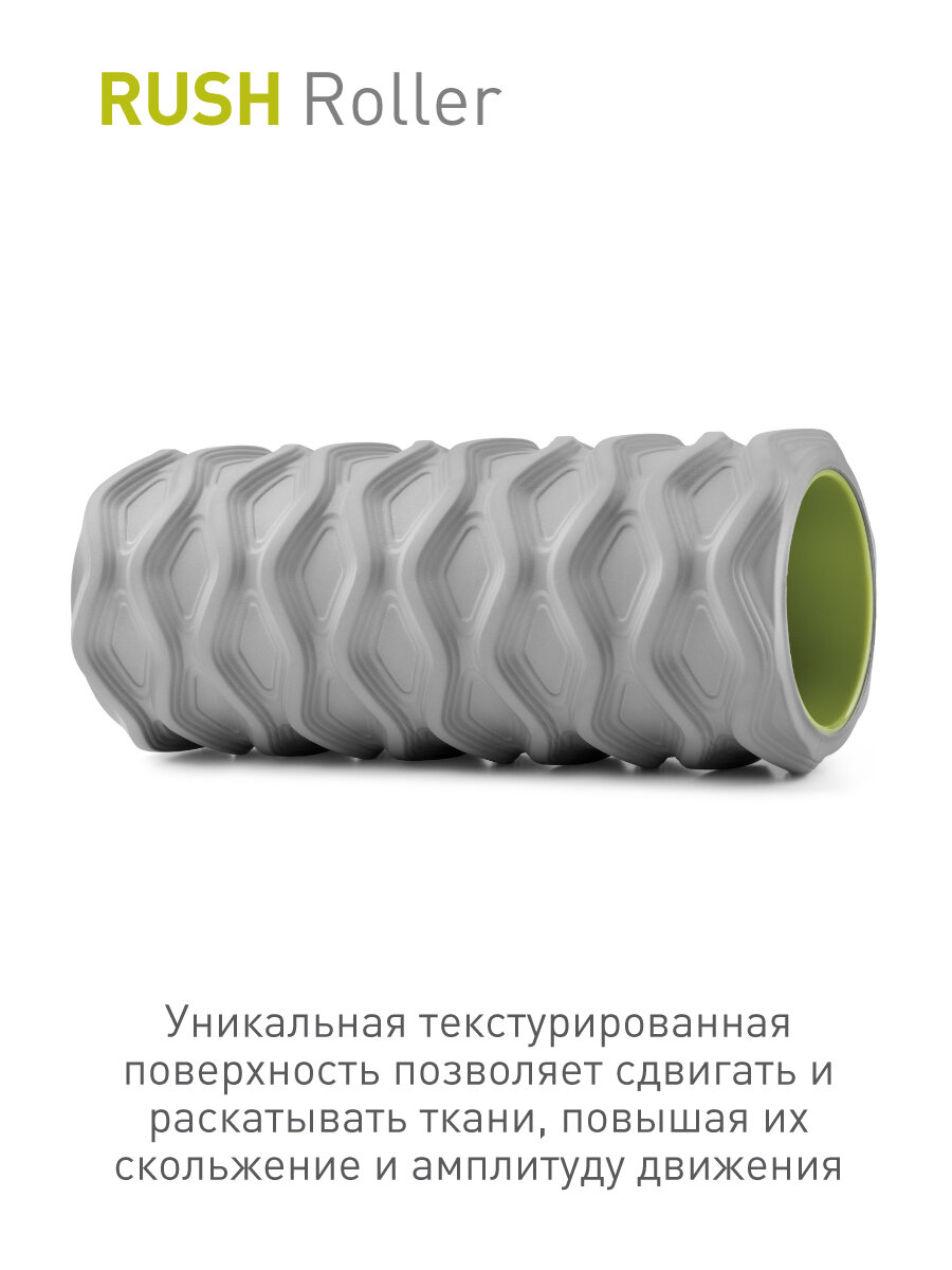Уникальная текстурированная поверхность массажного цилиндра RUSH Roller позволяет сдвигать и "раскатывать" ткани, повышая их скольжение и амплитуду движения. При сдвигании мышцы получают разнонаправленное разминание, которое способствует увеличению мобильности. Благодаря наличию твердых, высоких выступов и полой внутренней части, RUSH позволяет добиваться многоуровневой компрессии, которая улучшает гидратацию и эластичность тканей.