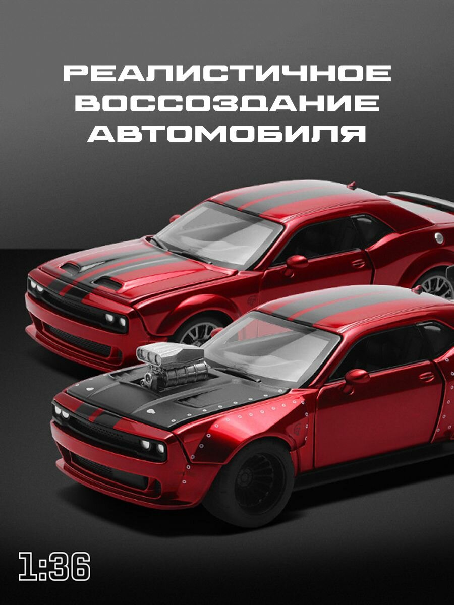 Масштабная металлическая модель авто Dodge Challenger SRT Hellcat 1:36 со сменным обвесом: сравнение цен, характеристики, фото, актуальное наличие и цены.