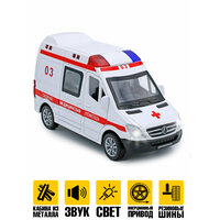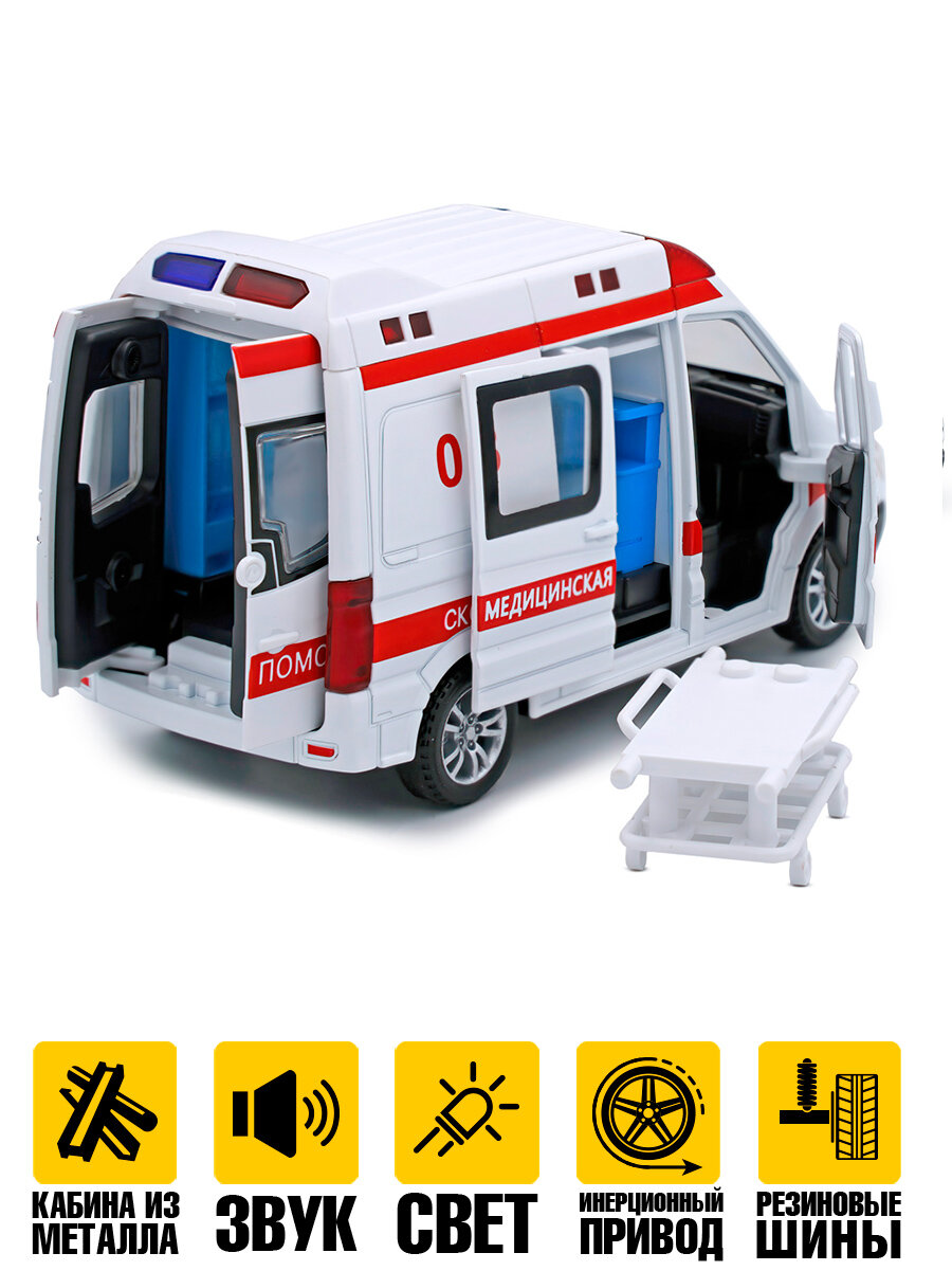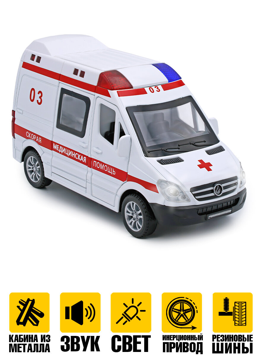 Купить Масштабная модель — Скорая помощь масштаб 1:32 — свет и звук- инерционный механизм с доставкой по всей России.