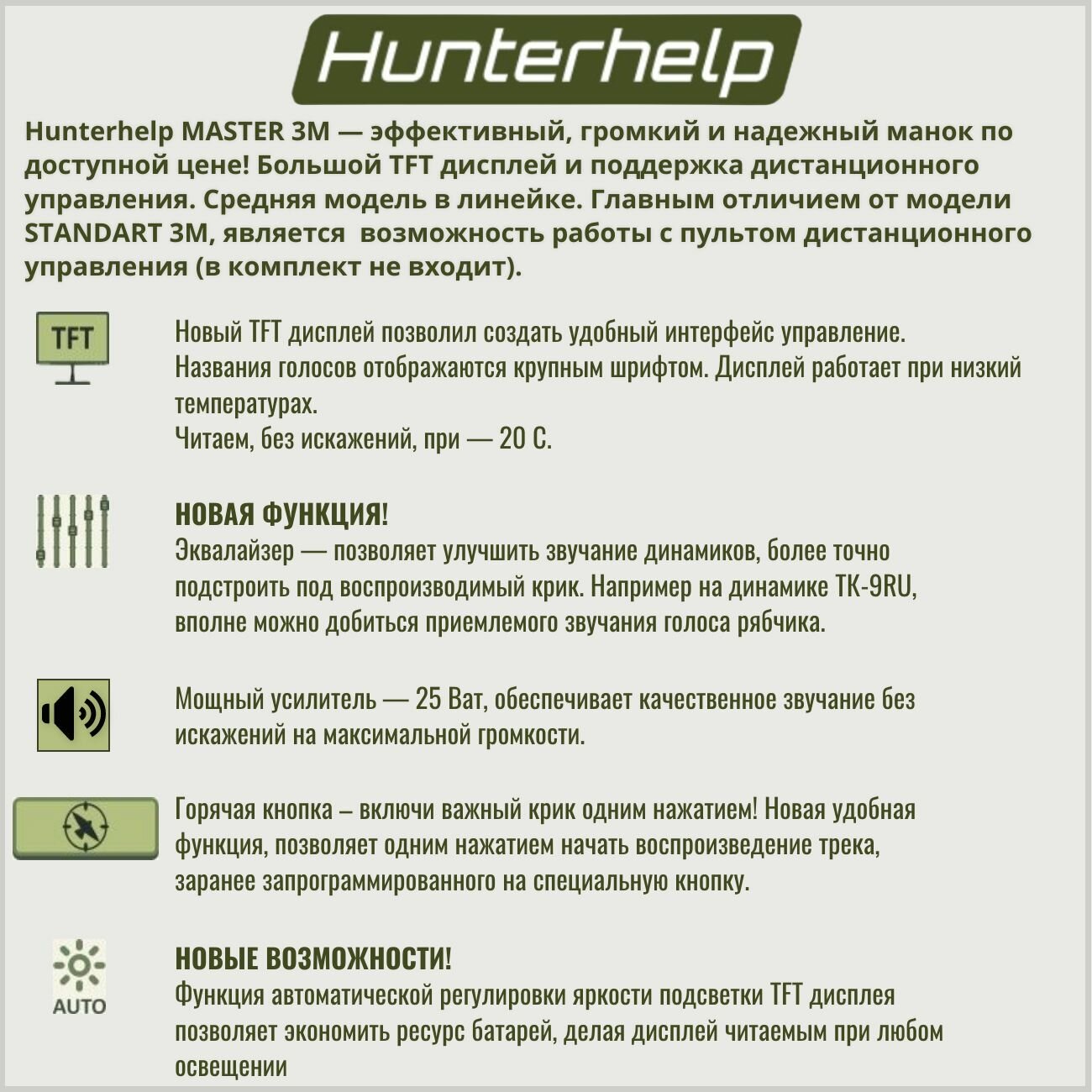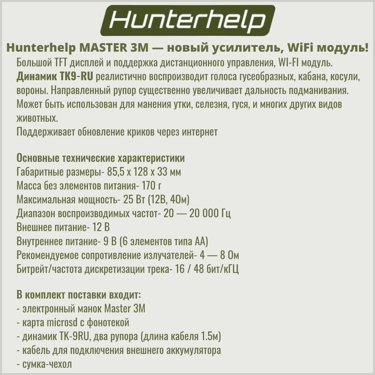 MASTER 3M, динамик TK-9RU, Фонотека #1 Северо-Запад. Электронный манок HunterHelp: сравнение цен, характеристики, фото, актуальное наличие и цены.
