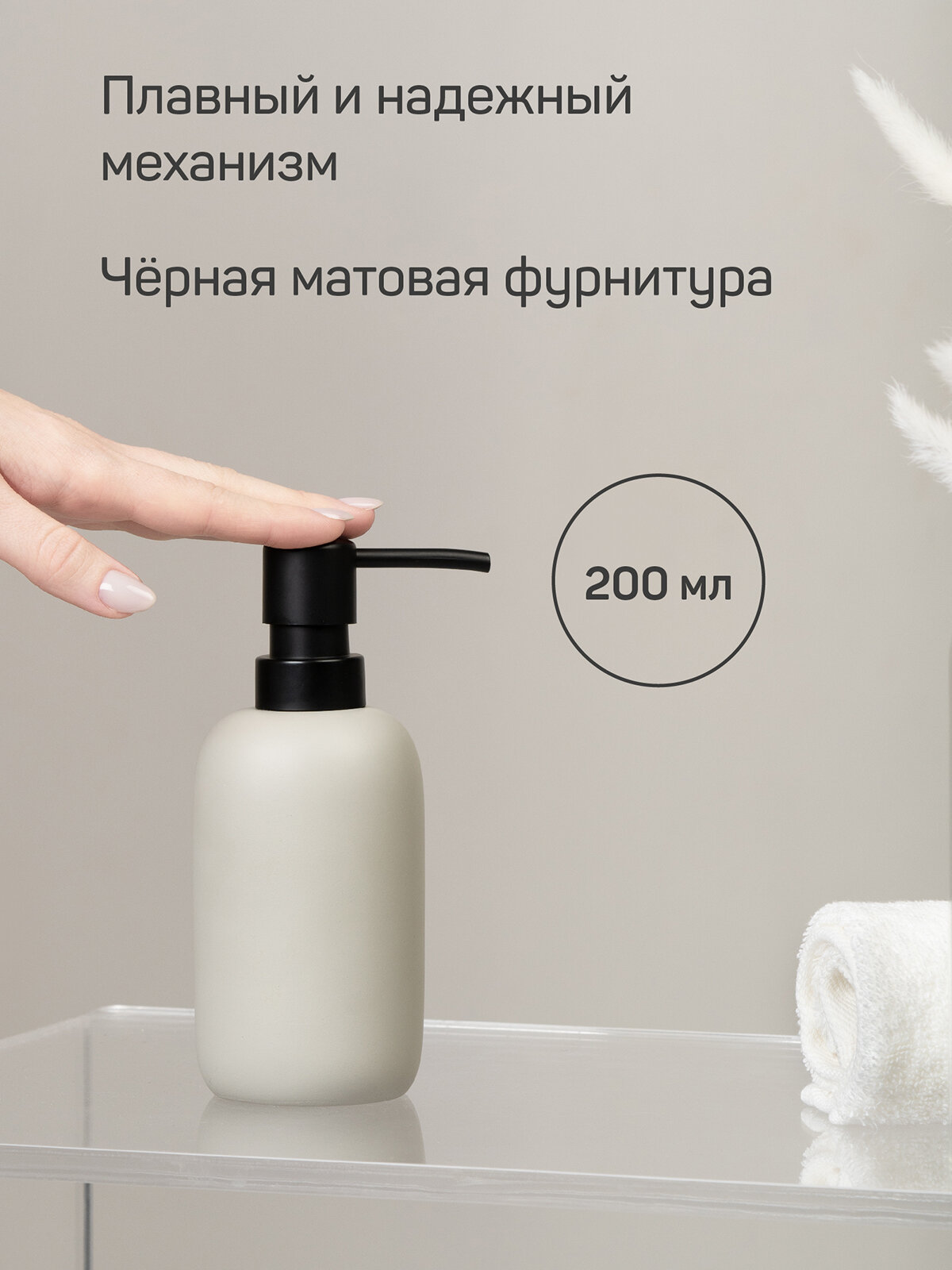 Набор аксессуаров для ванной комнаты LOFT состоит из дозатора для жидкого мыла (объем 200 мл), стакана для зубных щеток и кисточек для макияжа и мыльницы. Все предметы коллекции выполнены просто и функционально – спокойный серый цвет, черная матовая фурнитура, полное отсутствие украшений в виде принтов или рельефа. Изюминка коллекции LOFT в сочетании современных материалов, простоты и качества.