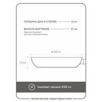 Алюминиевая блинная сковорода 22см с антипригарным покрытием серого цвета гранит имеет диаметр дна 20,5см и верха22 см. Эта сковородка для блинчиков подходит для большинства размеров конфорок, прогревается максимально равномерно. Размер блинов оптимален для фаршировки.